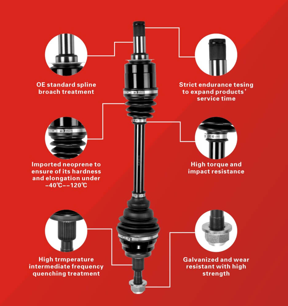 Die wichtigsten tragenden Komponenten sind aus speziellem CV-Gelenkstahl Nr. 55 gefertigt , der für kontinuierliche Rotation und mittlere bis hohe Drehmomentbedingungen ausgewählt wurde, die für AWD-Minivans typisch sind.
