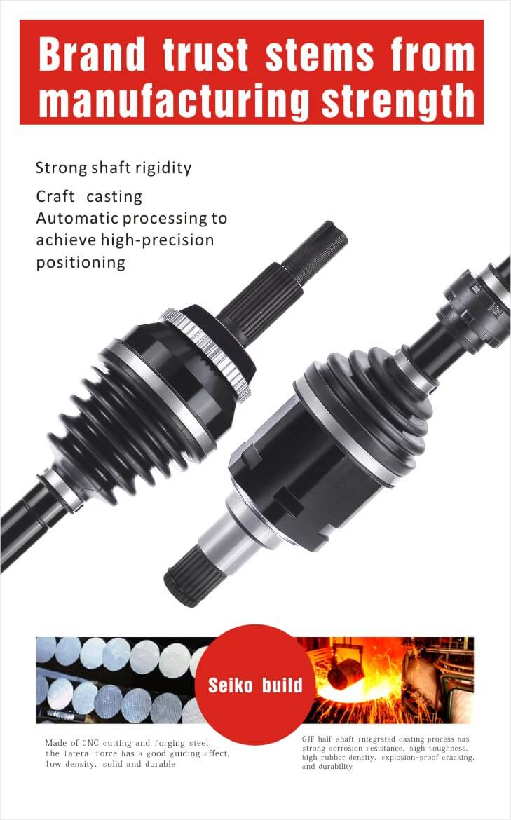 Die CV -Achse (konstante Geschwindigkeitsachse) ist eine kritische Antriebsstrangkomponente, die das Differential mit den Rädern verbindet.